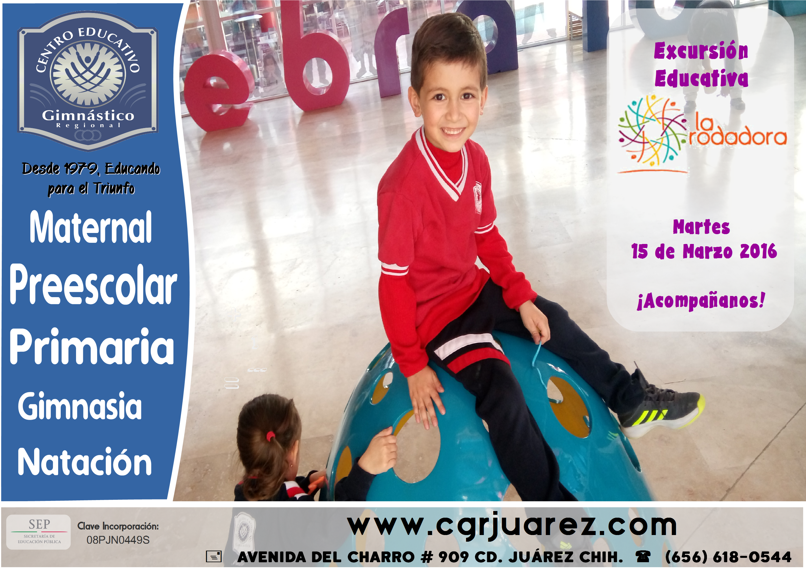 Publicado el 1 de marzo de 20161 de marzo de 2016 por staff EXCURSIÓN EDUCATIVA El día 15 de Marzo realizaremos una visita al museo interactivo La Rodadora. Favor de enviar autorización de salida a la brevedad. En el mes de Marzo 30% DESCUENTO en Inscripción a Preescolar Ciclo 2016-2017 **para nuevo ingreso Comparte esto: Haz clic para compartir en Facebook (Se abre en una ventana nueva) Facebook Haz clic para compartir en WhatsApp (Se abre en una ventana nueva) WhatsApp Haz clic para compartir en X (Se abre en una ventana nueva) X Haz clic para enviar un enlace por correo electrónico a un amigo (Se abre en una ventana nueva) Correo electrónico Haz clic para compartir en Pinterest (Se abre en una ventana nueva) Pinterest Me gusta Cargando... Relacionado