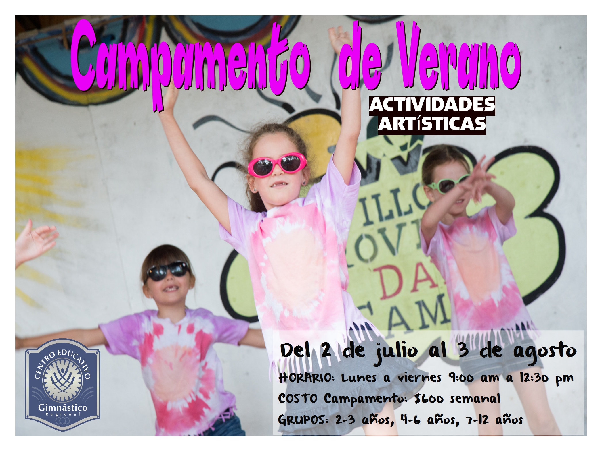 Leer Más "Lunes 16 julio 2018: SUSPENSIÓN clases de natación por mantenimiento de alberca"HORARIO CAMPAMENTO: Lunes a Viernes de 9:00am a 12:30 pm (30 minutos tolerancia antes y despues)